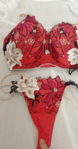 お風呂上がりに 決めたのが 刺繍入りの赤 Tバック