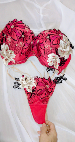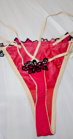 今日の下着は刺繍いりの赤 Tバック