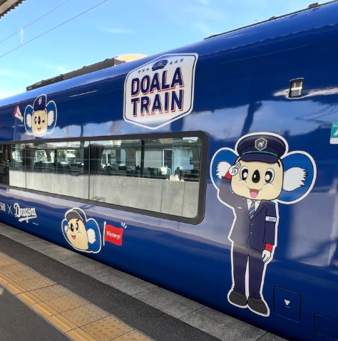 メガホンを持って応援するドアラが車体に描かれています。