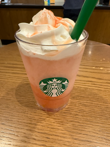 只今スタバで待機中今日から発売の桃フラペチーノマッタリ涼んでまーす。二人きりの時間過ごせたらいいなぁお兄様にサワサワされたーいきょうかです 笑