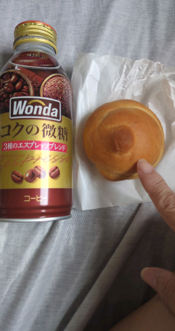 こんにちわ?? 今日は台風の影響で少し曇? 今日の朝昼は WANDAコクの微糖とパン? でもこのパン ムムム−あれに〇〇に (笑) 見える