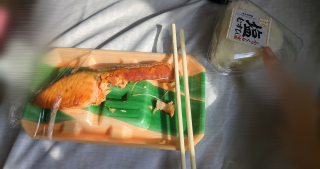 こんにちは? 携帯電話屋さんに用事で お手掛け? 鶴舞線降りてから遠いは〜(笑) 用事が終わりスーパーに買い物 鮭、おにぎり? お腹1杯になった ご馳走さまでした♪?