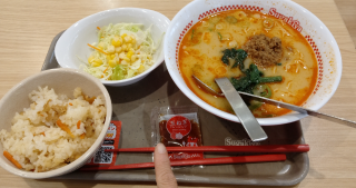 こんにちは? 用事の為今日は 離れてスーバに用事の帰りに 初の試みのスガキヤの担々麺 そんなに辛く無かったよ(笑) ご馳走様でした
