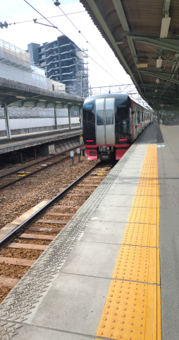 今日のコーデとコラボ 名鉄ミュースカイ 特急豊橋行き ミュースカイの音楽流せばいいのにね 超ミニスカ ピンヒール