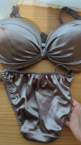 紫色の上下 ハーフツルツルパンツ 本当にツルツルで肌触り最高です早く脱がしてね?