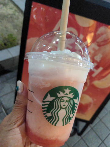 事務所帰りにスタバよって桃飲んだよ美味い7月はパイナップル娘たちと飲もうかな
